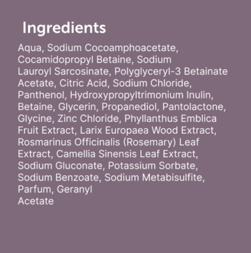 Поддържа по-здрава и по-гъста коса, като същевременно нежно почиства скалпа. Тази мека формула осигурява дълготрайна хидратация, помага за предотвратяване на посивяването на косата и засилва естествения блясък. Идеален за ежедневна употреба и подходящ за чувствителен скалп. Без парабени, сулфати и силикони.